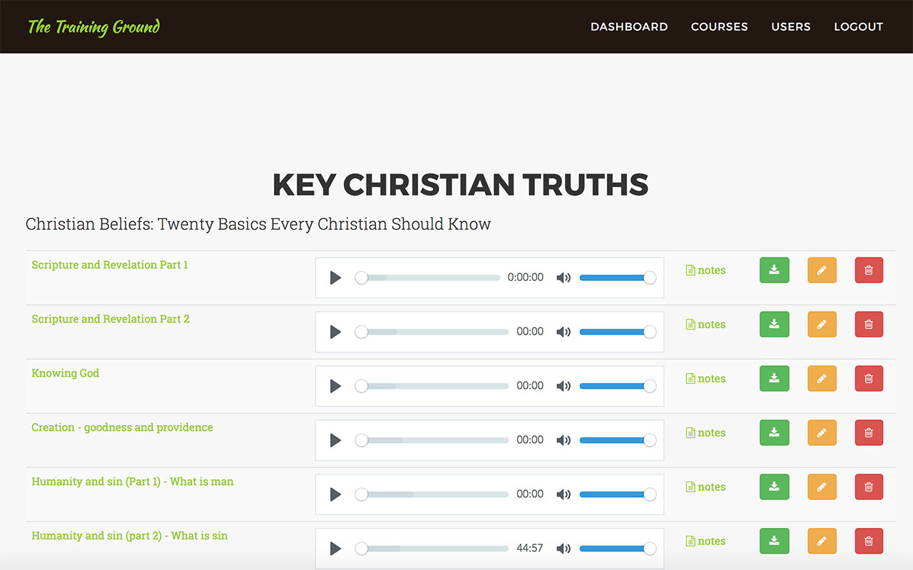 This web application is a content management system with an online audio platform and user management system. Users enrolled to the training ground will have an account where they could log in and view the documents and audio per seminar. The training ground admin could create courses and seminars within that course, as well as upload a document and audio per seminar.